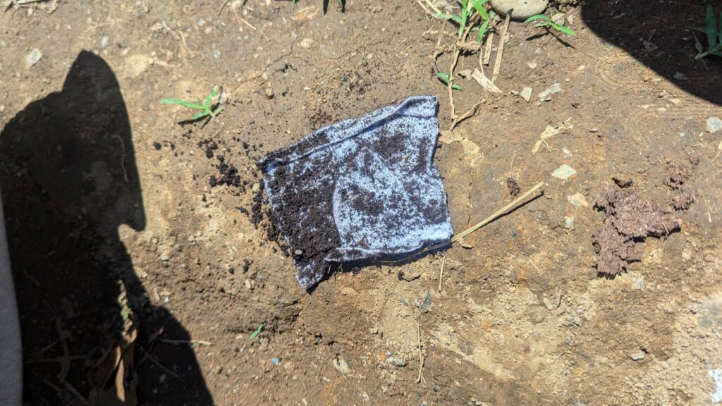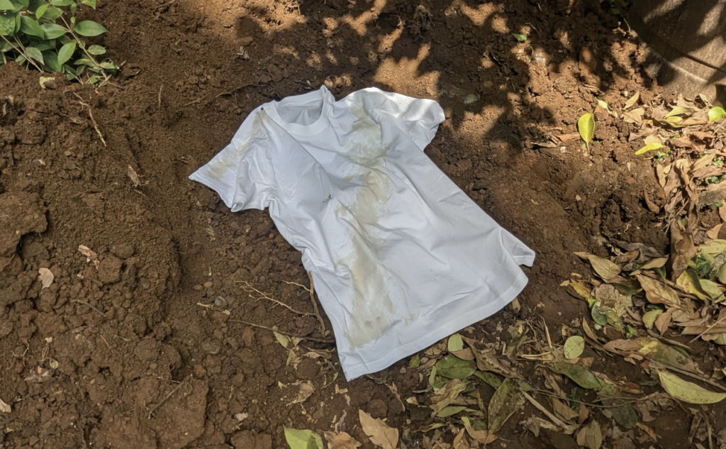 このプロジェクトでは、微生物を「表現の素材」としてではなく、ともに何かをつくる「共同制作者」として捉えました。綿の服を土に埋めると、微生物の働きによって布は食べられ、変色し、かたちを変えていきます。その痕跡を私たちがどのように捉えるかが重要なポイントになります。